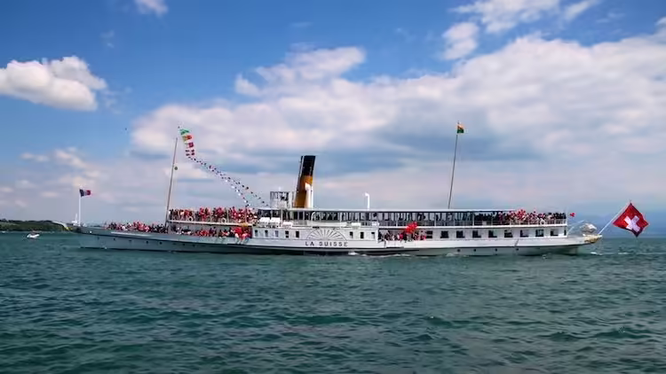 La Suisse (1910) is the grande dame of the Belle Epoque paddle steamers on Lake Geneva, Switzerland. It cruises mostly between Lausanne and Montreux.