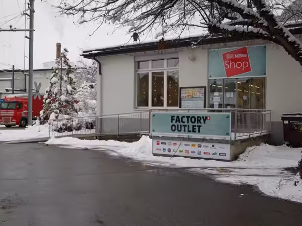 Cheap chocolates and other food products are on sale in the Nestlé Factory Outlet Shop in Broc, Switzerland, just a block from the Maison Cailler chocolate factory. Competitor Lindt has a large factory store in the Aubonne Outlet Shopping Mall on the shores of Lake Geneva.