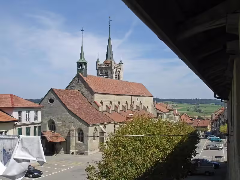 Gothic Church in Romont, SwitzerlandGothic church in the wall enclosed town of Romont in Fribourg Canton, SwitzerlandHome » Freiburg / Fribourg » The Swiss Stained Glass and Art Museum in Romont » Gothic Church in Romont, Switzerland